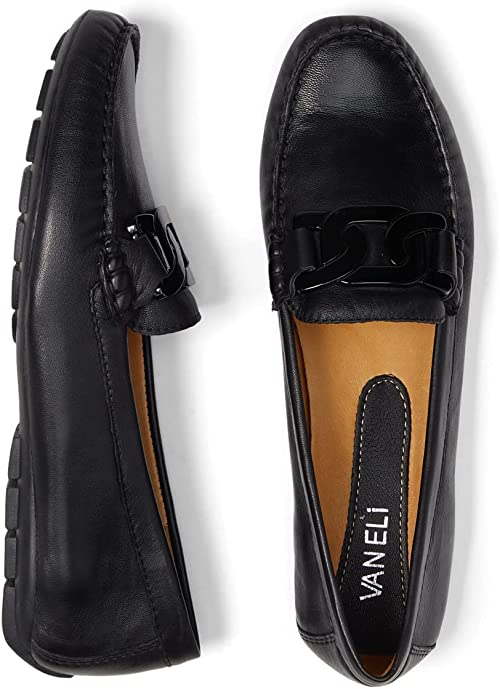 Boasting the traditional moccasin construction with a sleek and lavish finish, let this loafer gracefully elevate your personal style. Ultra-soft glove leather upper and lining. Padded insole. Slide-on style. Classic round toe. Sleek chain accent on the vamp.