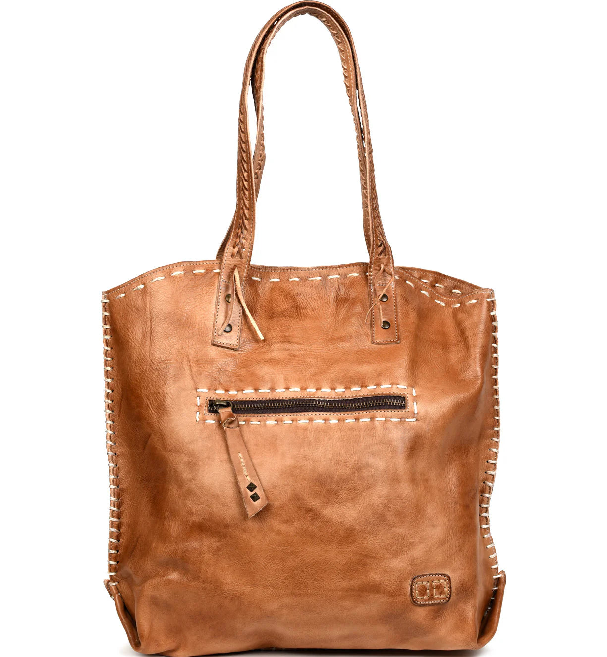 This handmade leather tote designed to fit all your essentials comfortably. Available in multiple vintage, eco-friendly finishes, this bag stands out with its eye-catching contrast stitch detail. The braided strap with leather fringe is skillfully handcrafted, making this leather tote an ideal choice for your daily endeavors.