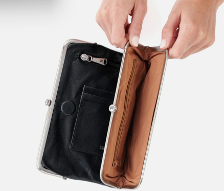 This wallet has a double frame design, making it the perfect hold-everything type of wallet and your favorite clutch.