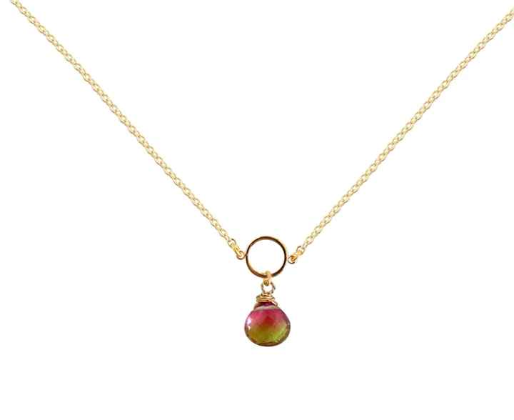 The sweetest teardrop gemstone hand wrapped on a gold plated finding with chain that fully adjusts with silicone bead up to 30" length.