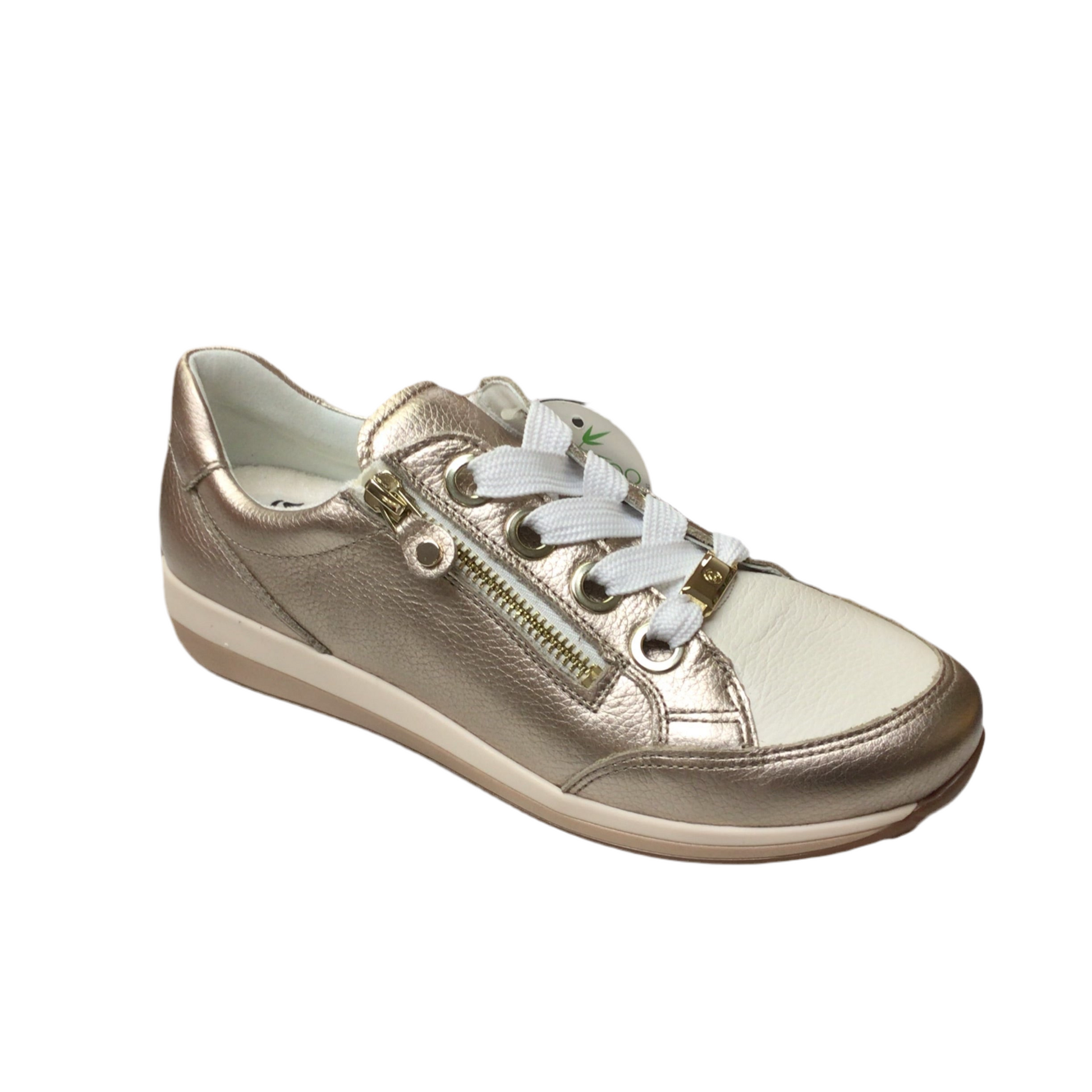 This stylish sneaker featuring grosgrain-ribbon laces and a zip closure has all-day comfort and support without sacrificing style .