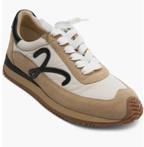Logo lettering details the side of a go-to street-chic sneaker crafted from smooth leather and soft suede.