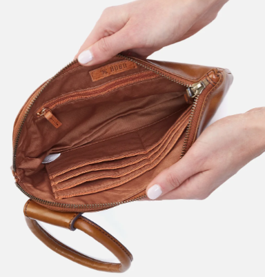Ready to grab-and-go? This clutch's convenient circular handle does it best. Small but mighty – fit your phone, keys, and more. Zipper closure to keep what’s yours, yours.